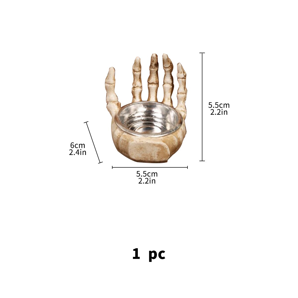 Other Product Category: Candle Holders, Candle Vessels Features: Realistic Skeleton Bones, Heat-resistant, Fine Workmanship Size Details: 1pc, L: 6cm/2.36", W: 5.5cm/2.17", H: 5.5cm/2.17" (Approx.) 3pcs, L: 5.5cm/2.17", W: 5cm/1.97", H: 4.5cm/1.77" (Approx.) Notes: Due to the light and screen setting difference, the item's color may be slightly different from the pictures. Please allow slight dimension difference due to different manual measurement.
